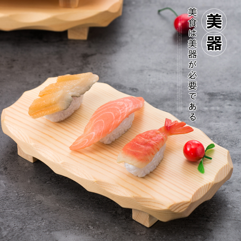 Luxury Creative Sushi Dishes Dining Room Hotel Day Style Wood Retro Sushi Bench Wooden Rectangular Thorn Body Plate