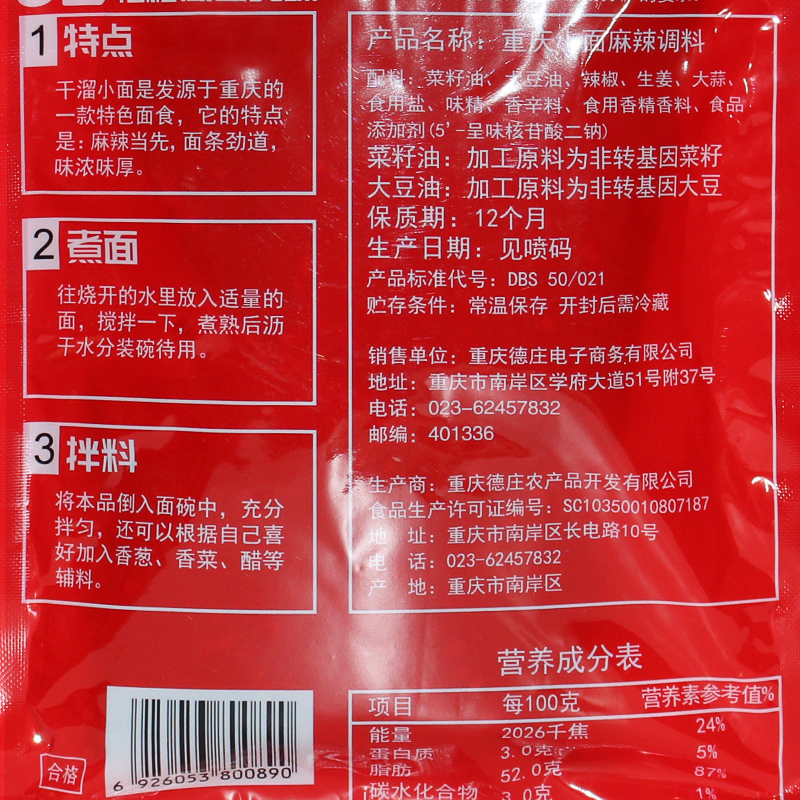 Dezhuang Chongqing Small Noodle Seasoning 200g * 4 Spicy Soup Noodle Dry Mix Shoulder Burden with Sour Spicy Powder Seasoning Sauce Bag