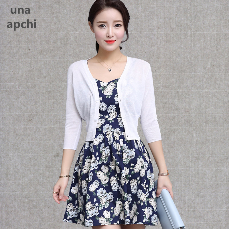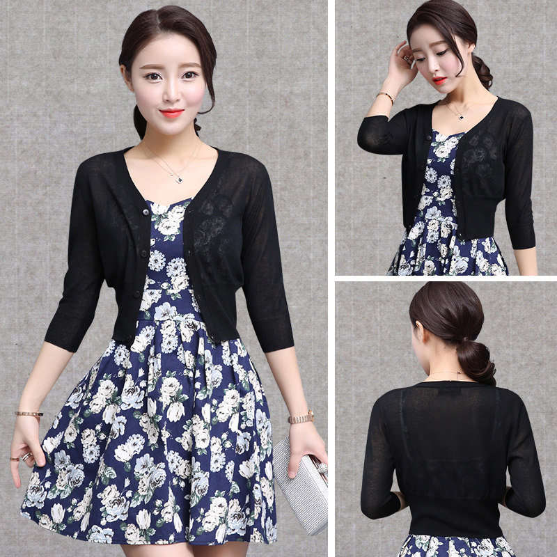 Ice silk shawl women's thin with foreign clothes outside the three-point sleeve summer air conditioning knitted cardigan sunscreen short jacket