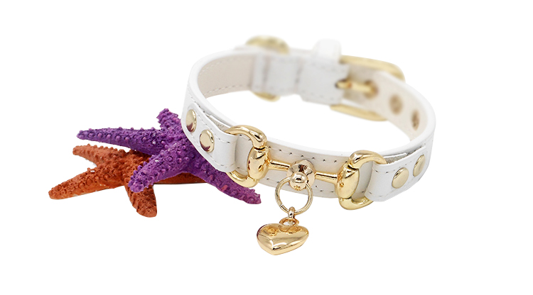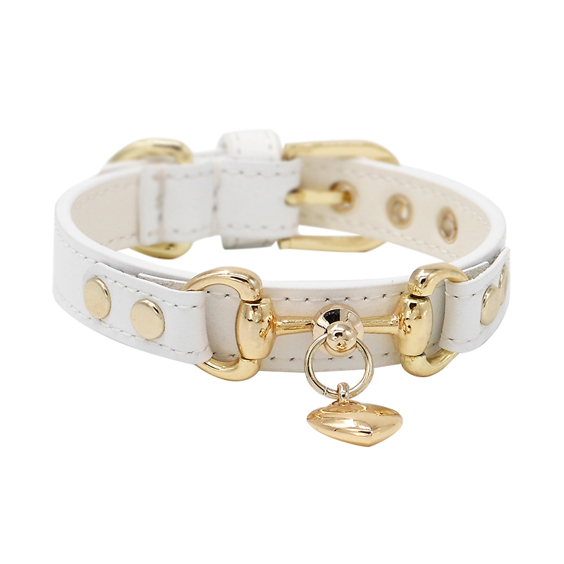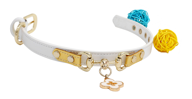 White gold white to buckle Achille genuine leather pet Item Circle Teddy VIP Snow Nareneck necklace