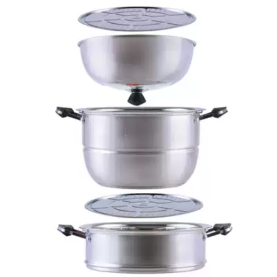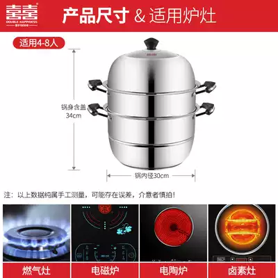 Double happiness steamer 304 stainless steel three-layer steamer steaming grid induction cooker universal thickened soup pot multi-purpose pot 30cm