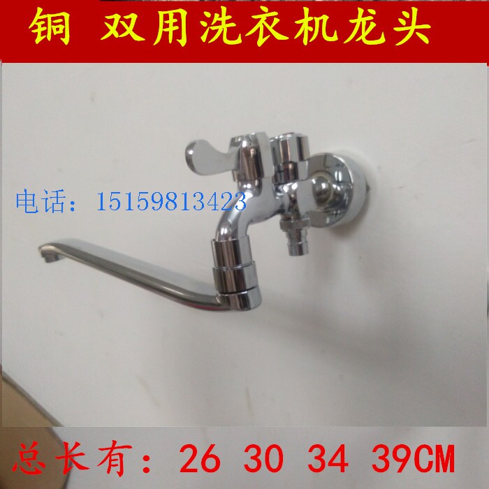 Mop pool in one-in-two-out lengthened rotary tap 25-39CM copper-in wall lengthened dual-use washing machine tap
