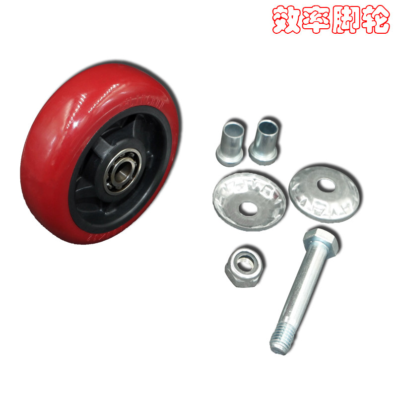 Lin Chun caster 4 inch medium arc red PU wheel wheel piece single piece furniture wheel mute trolley special wheel piece