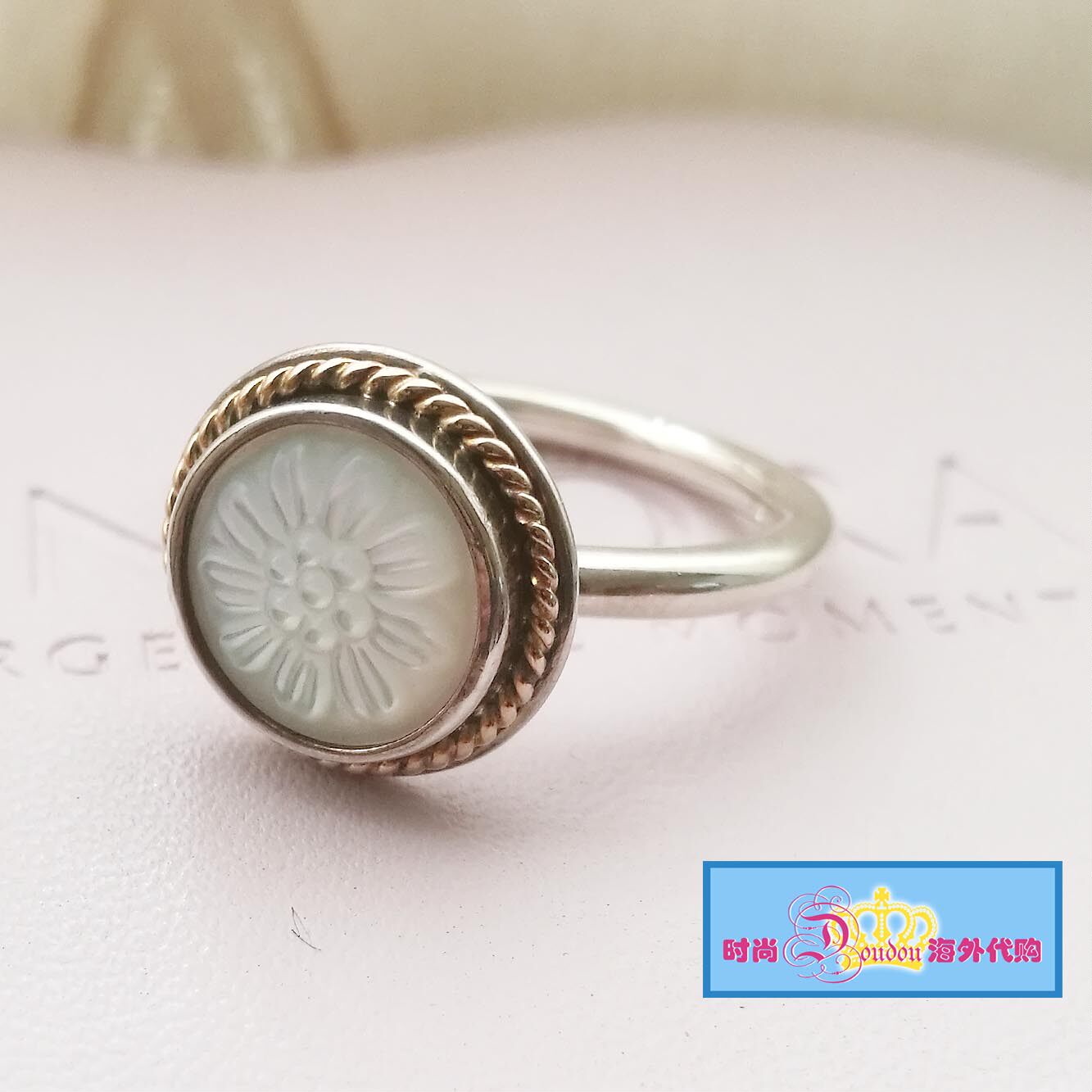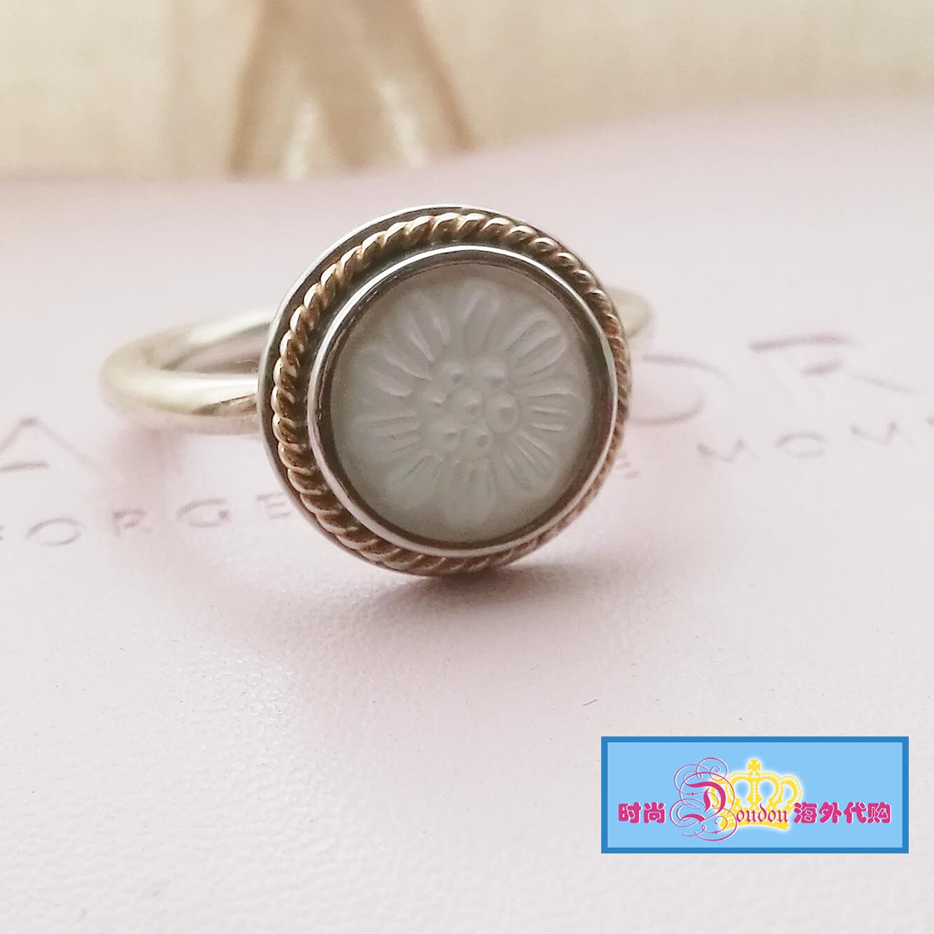 Domestic spot Pandora Pandora 14k gold pearl mother-of-pearl ring 190859MOP spot - Taobao