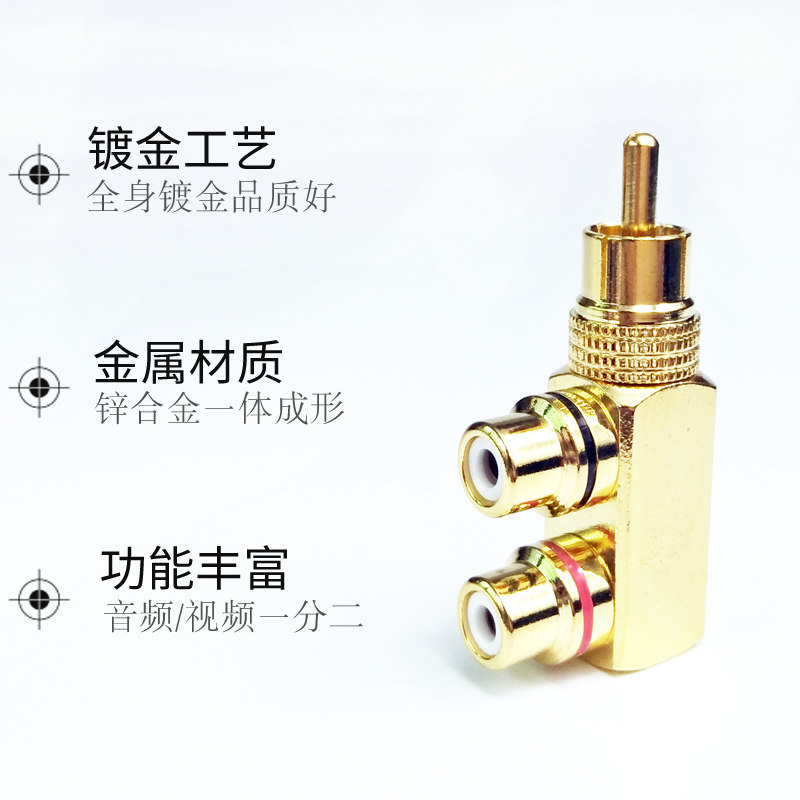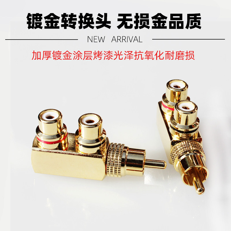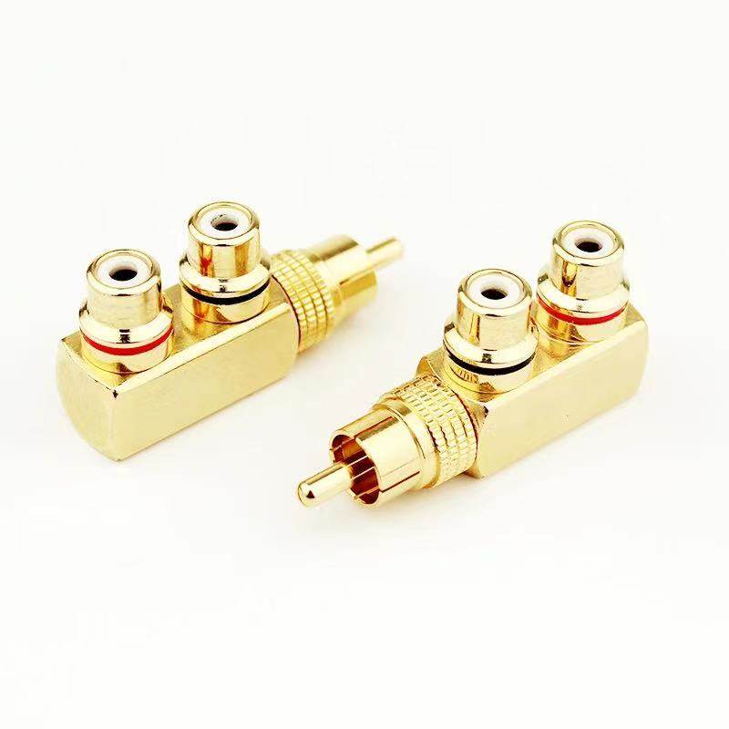 Gold-plated rca lotus audio adapter speaker male-to-female one-point two-pair plug TV video tee av head