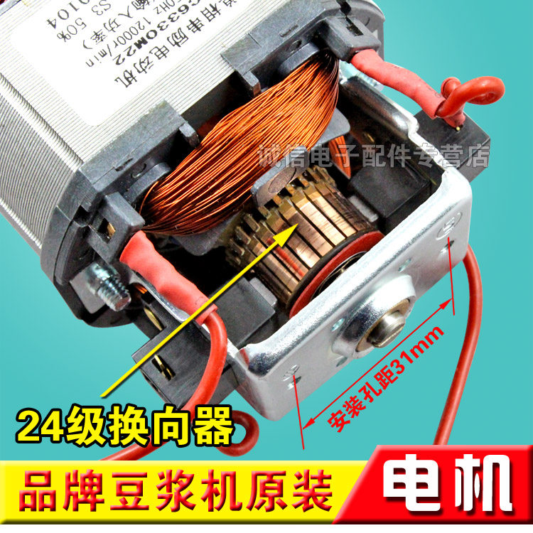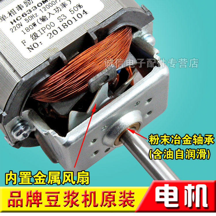 Soymilk machine motor Built-in fan blade pure copper 6 3 thin shaft length 7 cm D word blow-down current motor