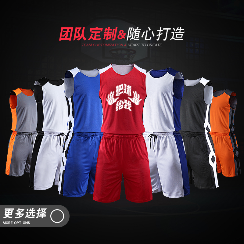 Double-sided basketball suit College basketball suit men's winter sports training game uniform set custom printed font size