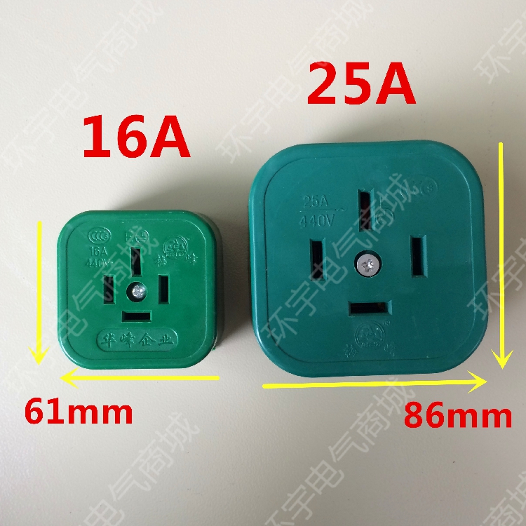 Huafeng Industrial Rubber Fall not rotten and anti-fall 4-hole flat foot plug socket 16A25A three-phase four feet 4 440V 440V