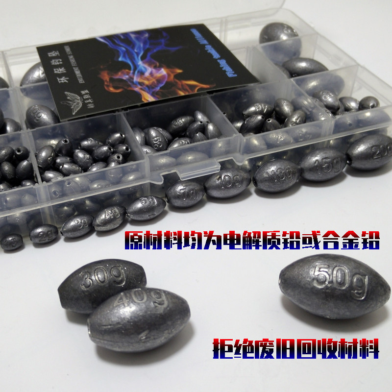 Tongxin lead pendant olive-shaped mixed masonry pendant hollow lead pendant hollow lead bridge raft rock fishing throwing sea pole 15603080g long-range lead casting