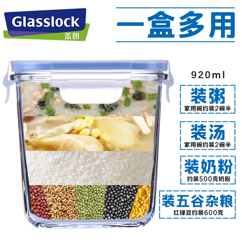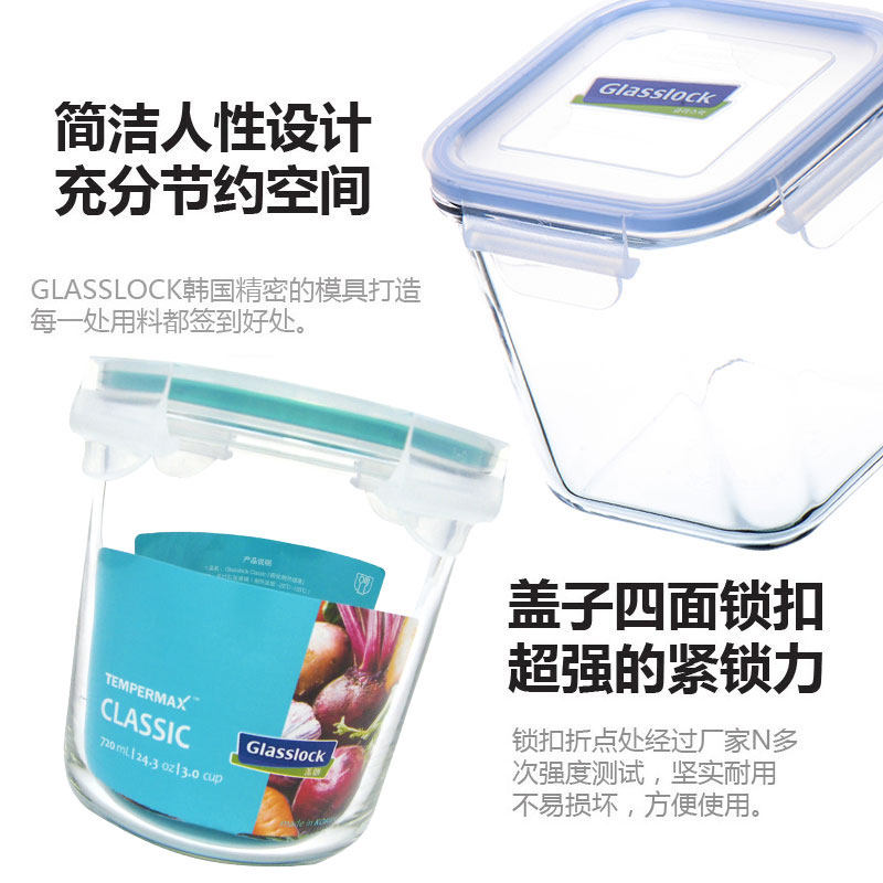 Glasslock glass lunch box lunch box microwave oven bowl fresh-keeping bowl cylindrical box fresh-keeping box sealed box soup box