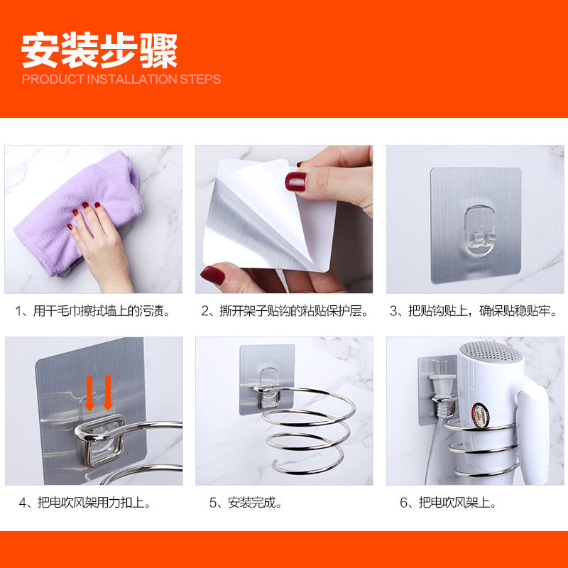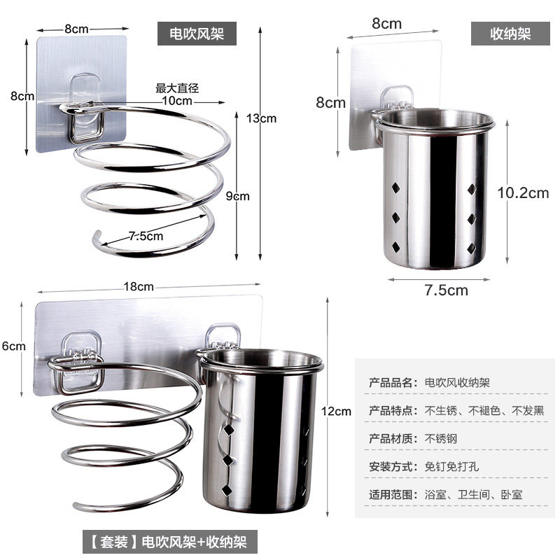 Stainless Steel Hair Dryer Shelf Free Punch Suction Cups Wall-mounted Bathroom Makeup room Bathroom Toilet Hair Dryer Racks