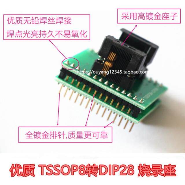 Full gold plated double contact point tsop8 ssop8 ssop8 DIP8 burn seat 8 foot ic test seat clip tssop-8