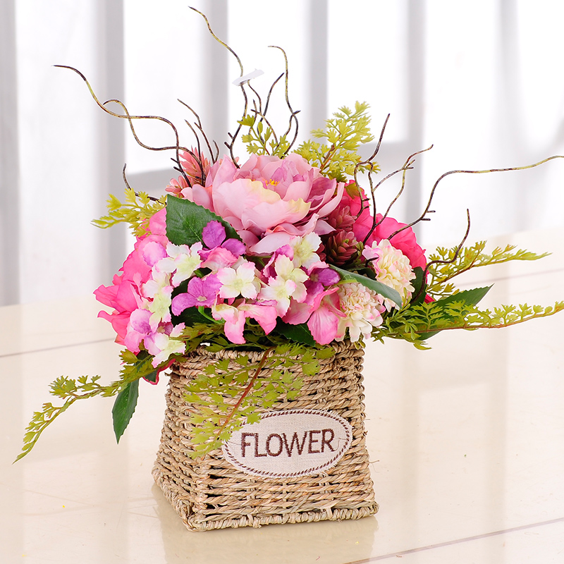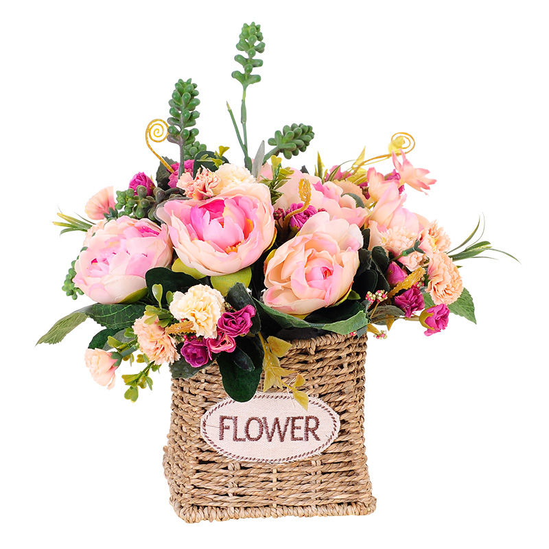 straw basket flower arrangement