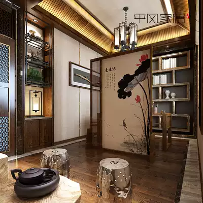 New Chinese style solid wood environmental protection screen partition porch living room office modern simple fashion love lotus screen