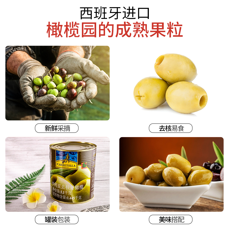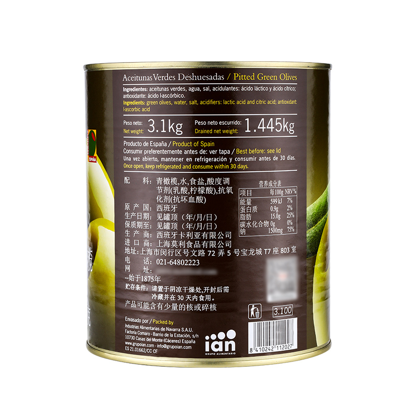 Kalia de-nucleated green olives 3 1kg Spanish imported seedless pizza salad cold dish pasta western food ingredients