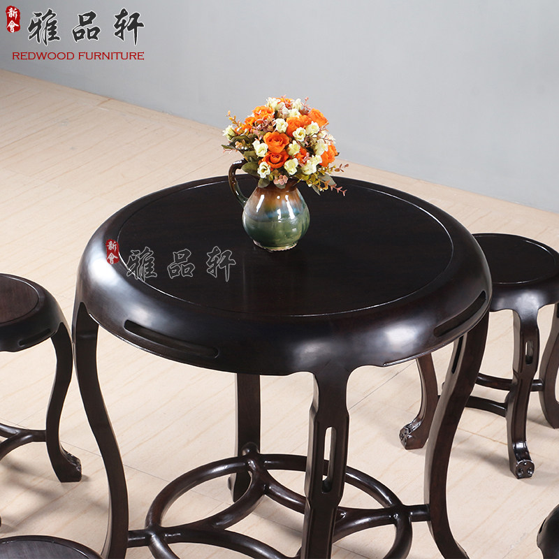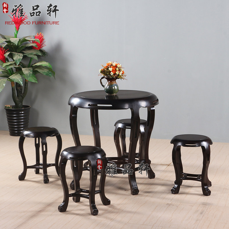 Redwood dining table African black sandalwood small dining table and chair combination Chinese solid wood imitation furniture round money table