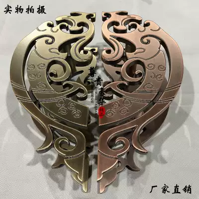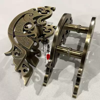 Semicircular door handle Fish-shaped carving Chinese antique copper round glass door handle Hotel handle Wooden door handle