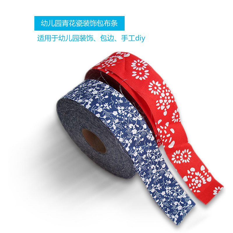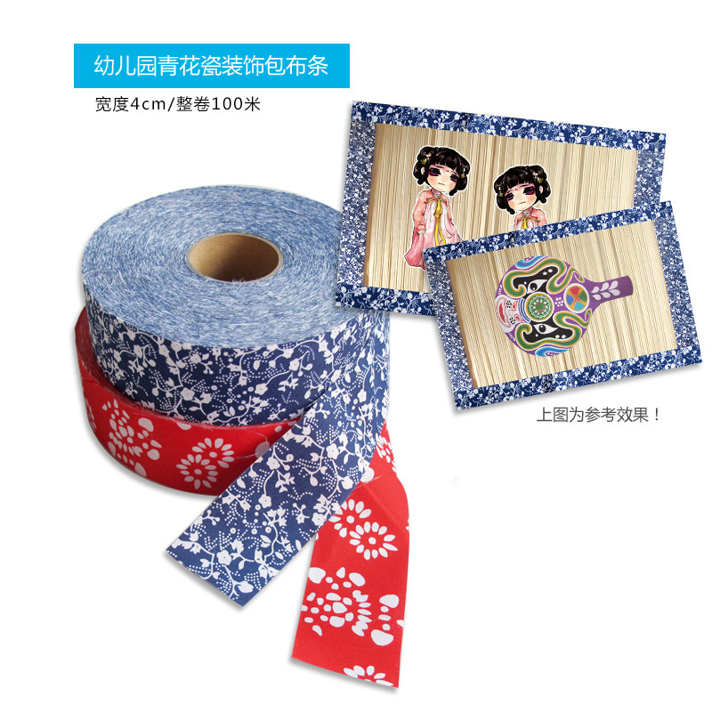 Kindergarten creative Huanchuang handmade materials Chinese style diy production Red navy blue flower porcelain national edging cloth strip