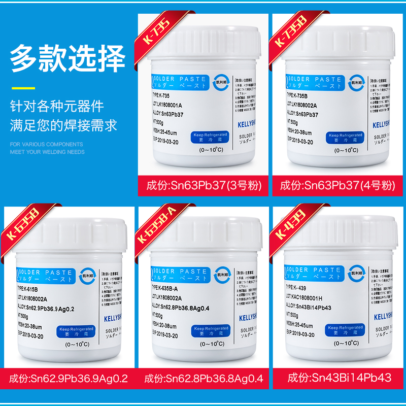 Sn43Pb43Bi14 with lead low temperature tin paste K735 (No. 3 powder) 63 37 tin paste tin paste K735 (No. 4 powder) 63 37 tin paste tin paste K615B
