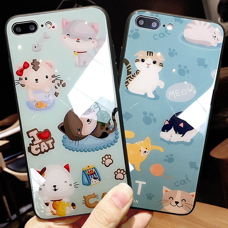 DZ Apple 8plus mobile phone protection shell female section iphone7plus protective sleeve 7p cartoon glass anti-fall 8 personality wave card Apple 7plus mobile phone protective sleeve se2 kitty