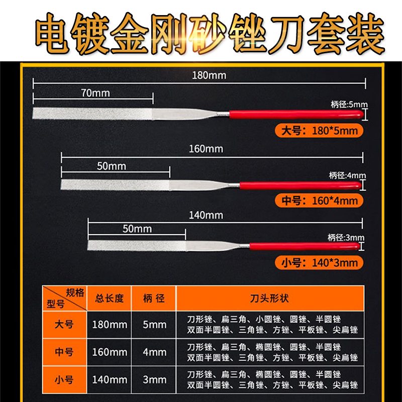 Gold Steel Stone Filing Knife 10 Suit Polished Metal Bodice Filing Knife Semi-circle Shaping Filing Triangle Trimming side Shkin file