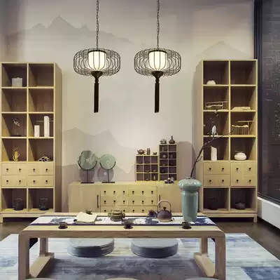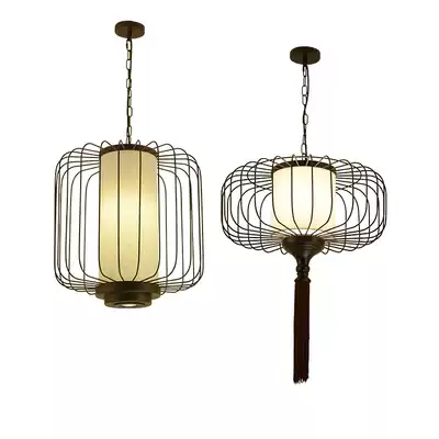 Modern Chinese wrought iron chandelier bird cage with spotlight lambskin Tea House hotel hot pot restaurant light card seat private room retro light