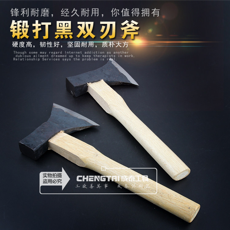 Pure hand forged and double-edged axe original woodworking axe with wood axe chop and hatchet for home axe