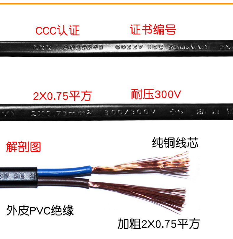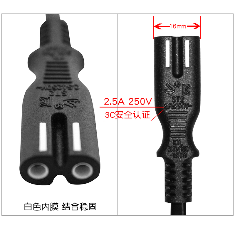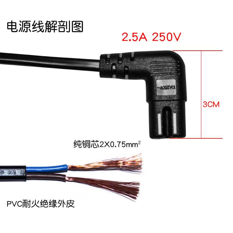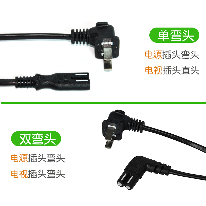 Original TV power cord extended two holes 8-word double elbow suitable for Skyworth Hisense TCL Samsung Changhong Philips