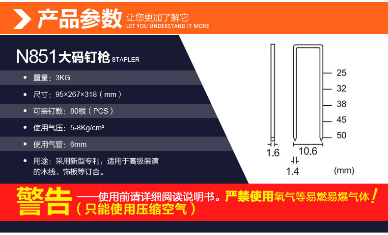 DAT INDUSTRIAL GRADE N851 PNEUMATIC CODE NAIL GUN N13 N13 N15 N17 N21 N19 N21 FURNISHING BOARD U-shaped Nail Gun