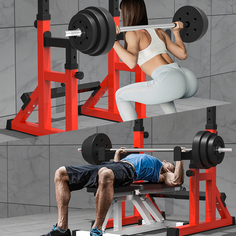 Commercial multifunctional weightlifting bed bench press frame red squat frame barbell rack fitness equipment home barbell set