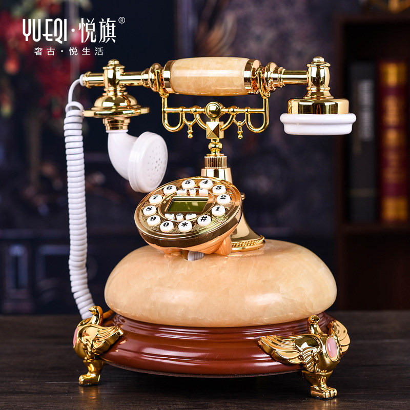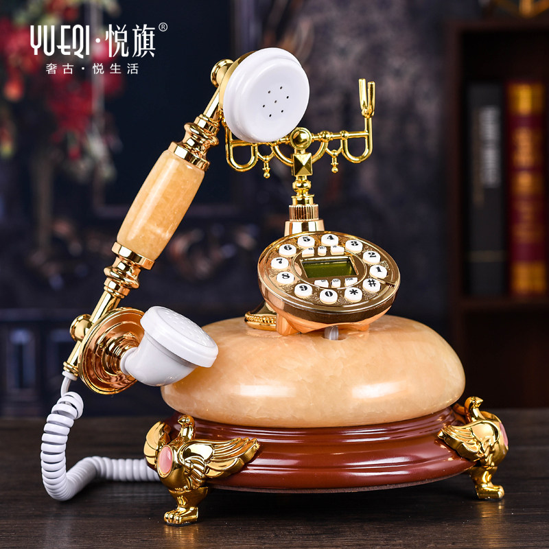 Eurostyle Antique Phone Natural Jade Retro American Old-style Home Office Fixed Seder Wire Telephone