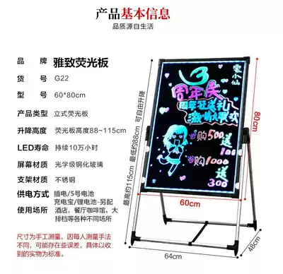 Hanging luminous blackboard 60 80 electronic fluorescent board vertical handwritten Billboard flash fluorescent screen writing board LED version