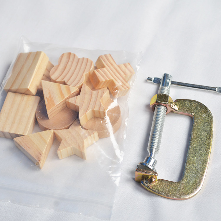 G-shaped clip 1 (large) G-shaped clip 1 shaped small wooden block 1 set (6 shapes) Shaped small wooden block 1 set + G-shaped clip 1 set of shaped small wooden block + G-shaped clip 3 shaped small wooden blocks 2 sets + G-shaped clip 6