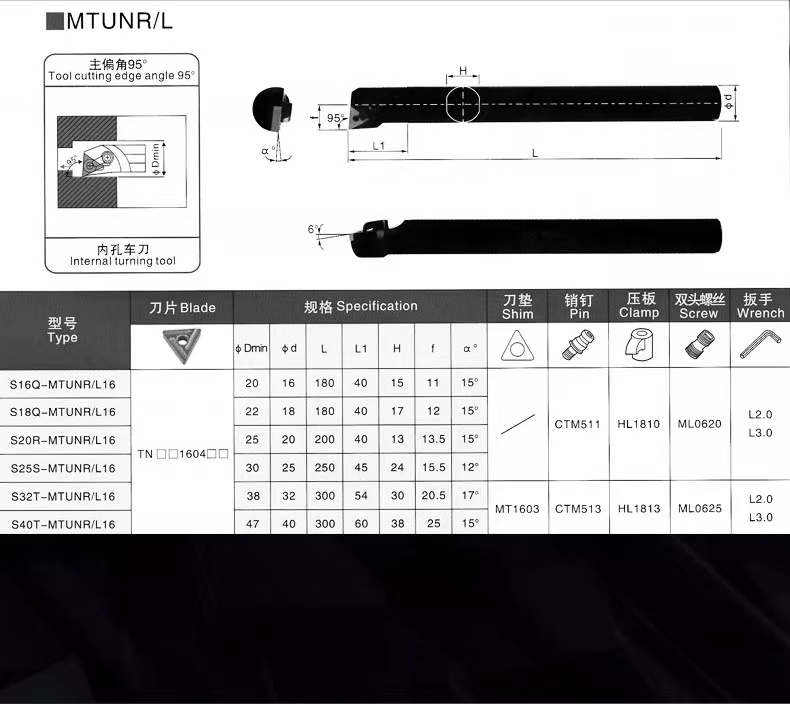 Positive knife S16Q-MTUNR16 Counter knife S16Q-MTUNL16 Positive knife S20R-MTUNR16 Counter knife S20R-MTUNL16 Positive knife S2
