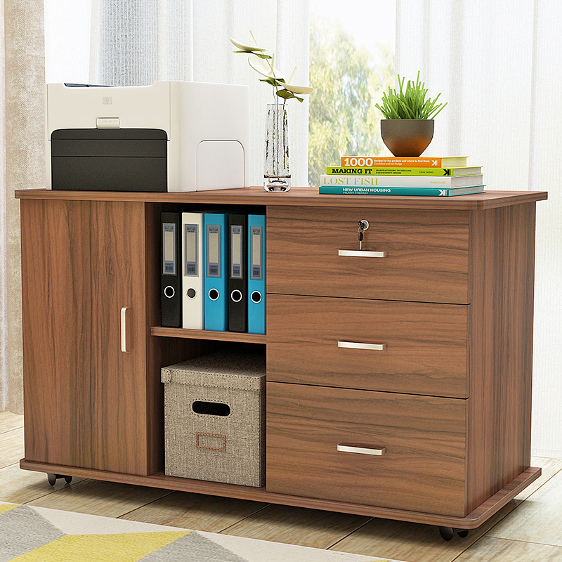 Poetic wooden office cabinet Floor-to-ceiling file cabinet lockable three drawer data cabinet storage mobile low cabinet