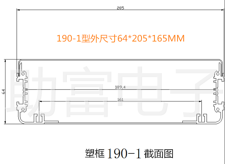 Type 190 plastic frame aluminium extrusion material metal sheet metal sheet instrument controller main shell housing 64 * 205 * 165