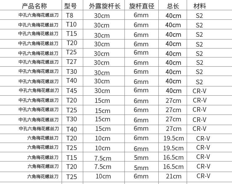 Short T15 40cm Lengthen Middle Hole T15 Medium and Long New T25 40cm Lengthen Middle Hole T20 40cm Lengthen Middle Hole T25 27cm