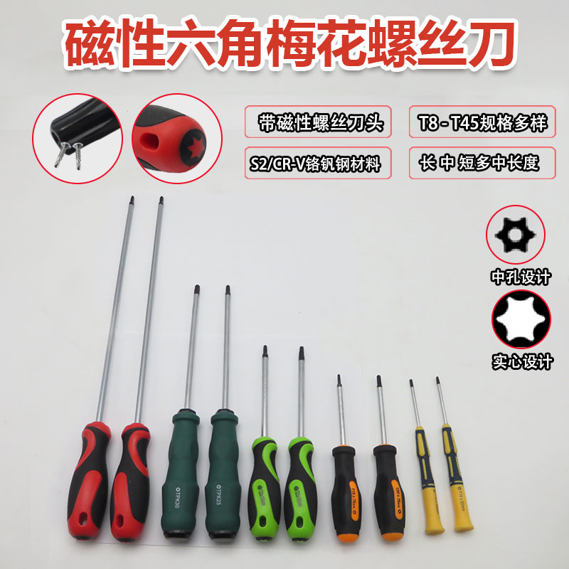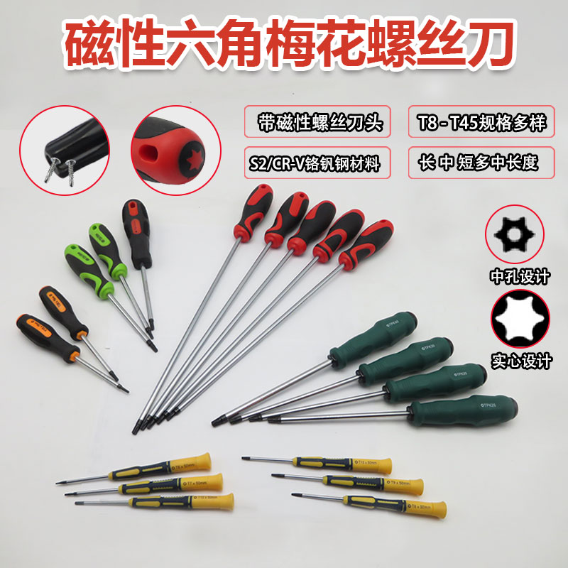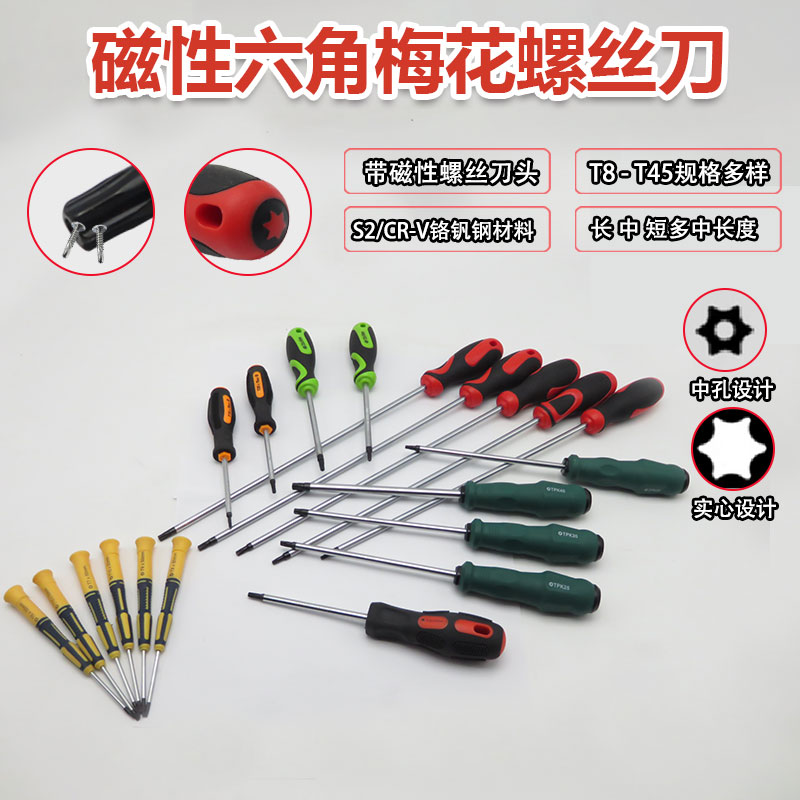 Medium hole magnetic lengthened inner hexagonal plum screwdriver star flower type screwdriver rice word with hole screwdriver T-shaped batch head