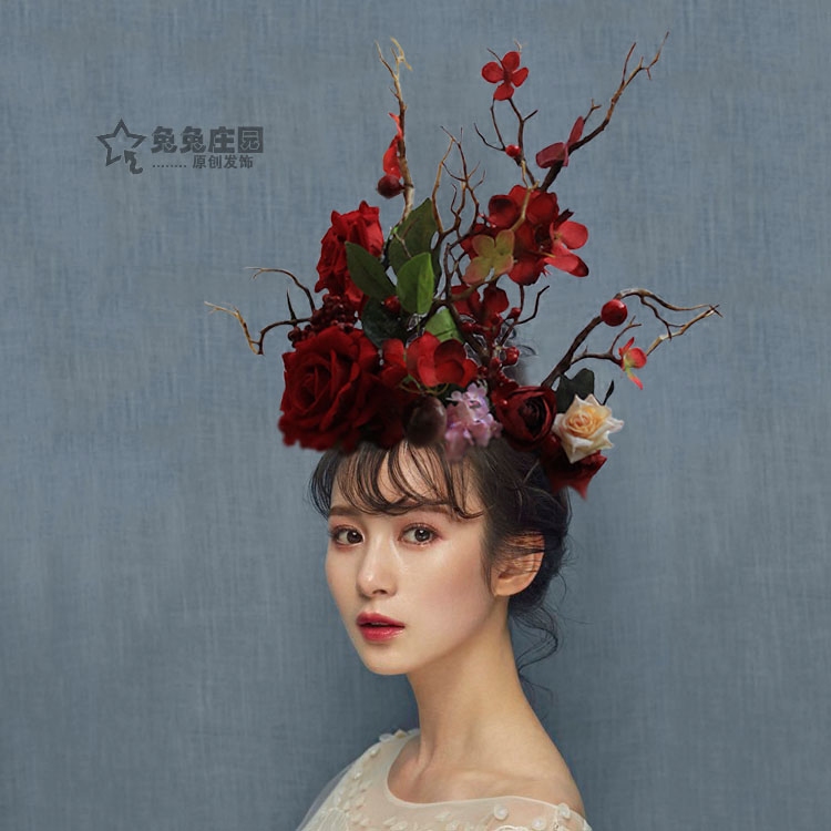 Senteo red branches deer corner hyperbolic top decoration stage walking show Han style bridal creative Chinese wind crown hair accessories