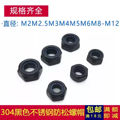 304 stainless steel black nylon anti-loose self-locking nut locking screw cap M2M2 5M3M4M5M6M8-M12