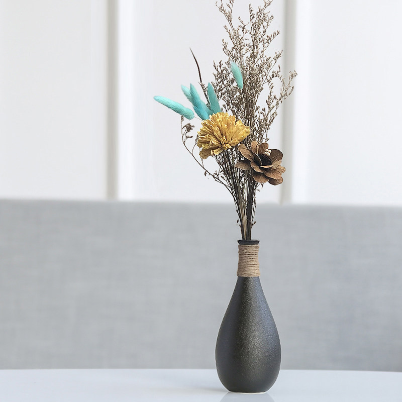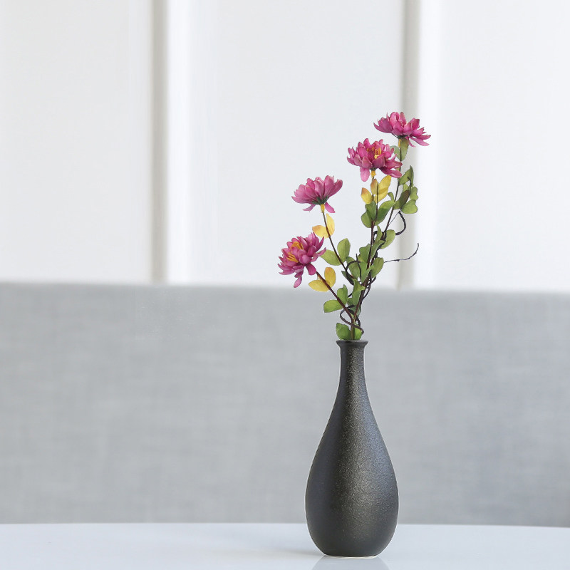 Ceramic vase simple black pottery living room home decoration ornaments Japanese vintage black Lubao dried flower arranger