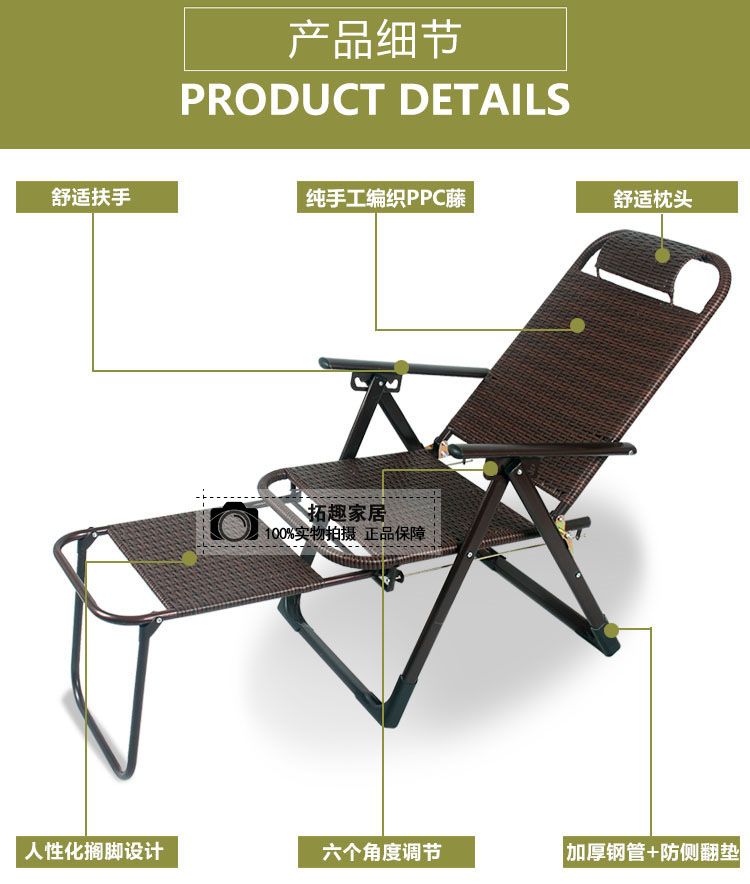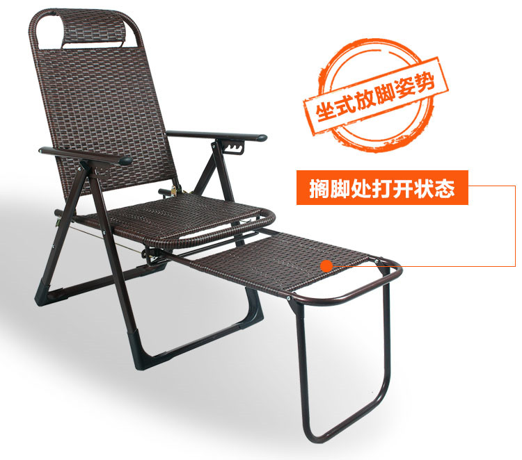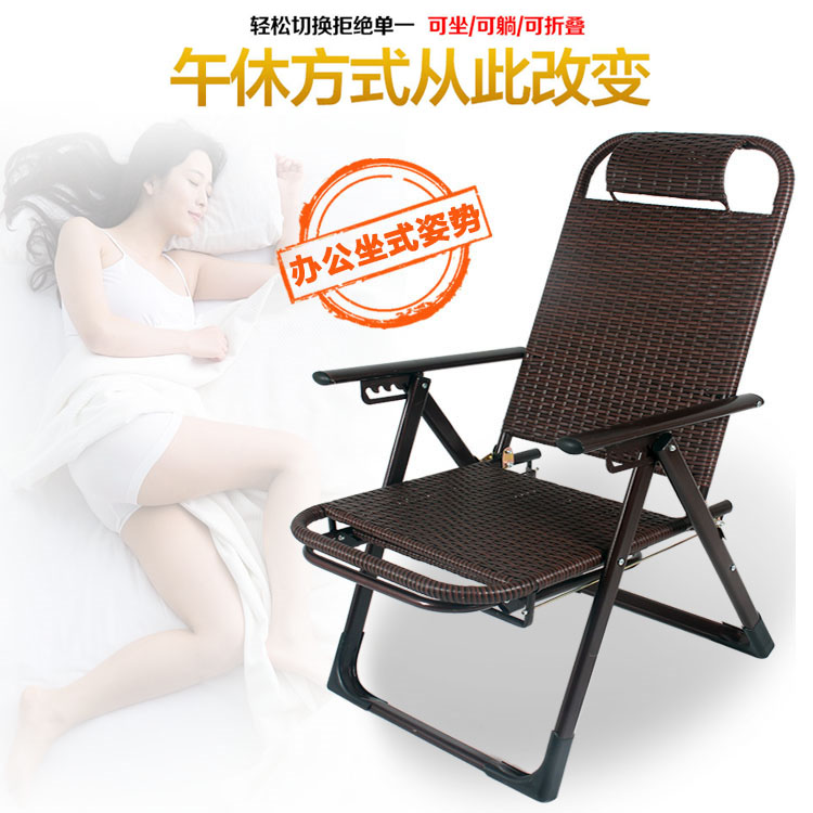 Extended folding rattan chair reclining chair lunch break nap bed office back lazy cool chair summer leisure beach chair