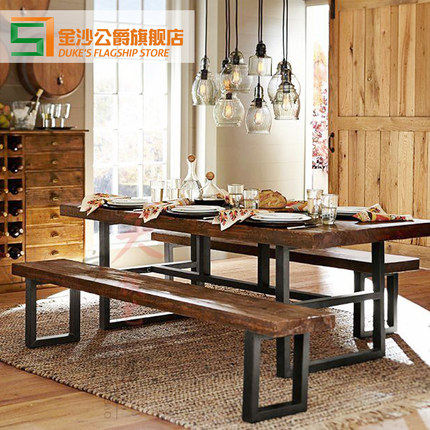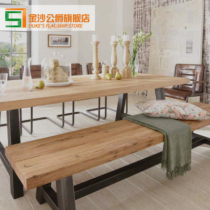 loft dining table long bench retro solid wood office long stool American strip chair rectangular log chair