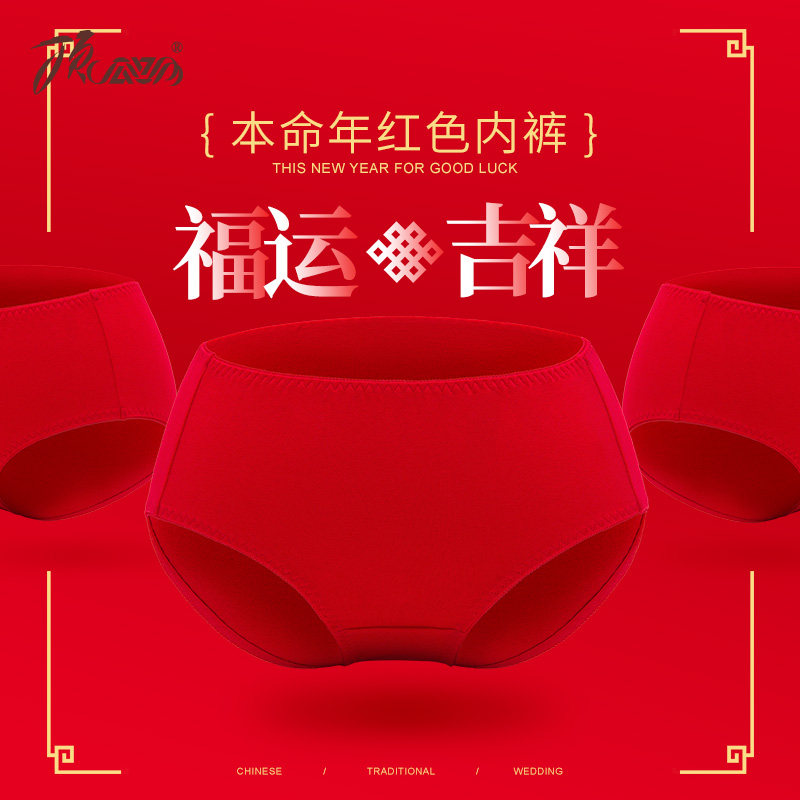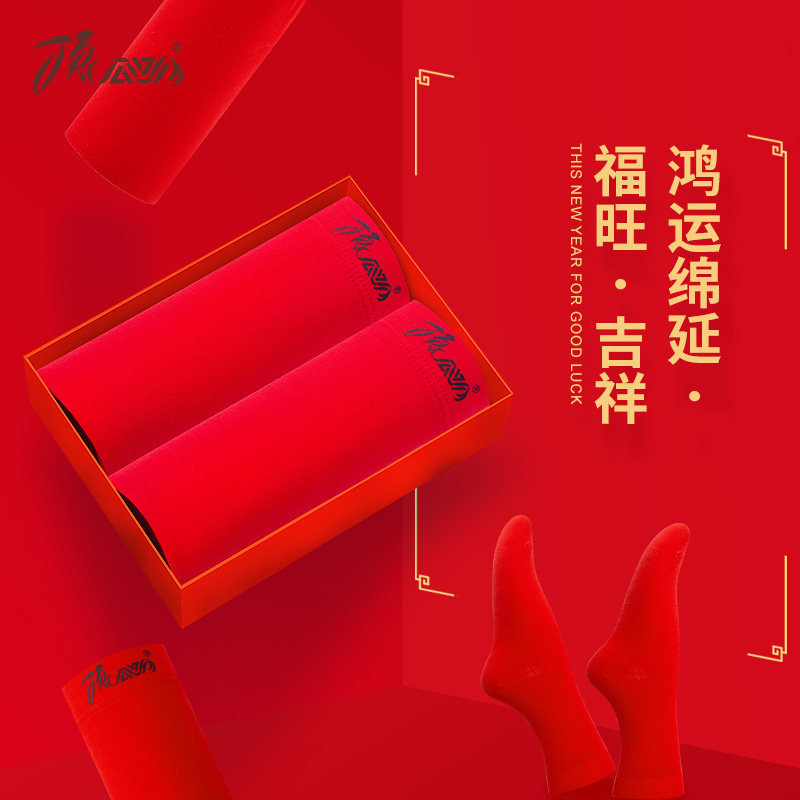 2 packs top melon melon Chinese red underwear men's and women's big red mid-waist shorts natal underwear red socks
