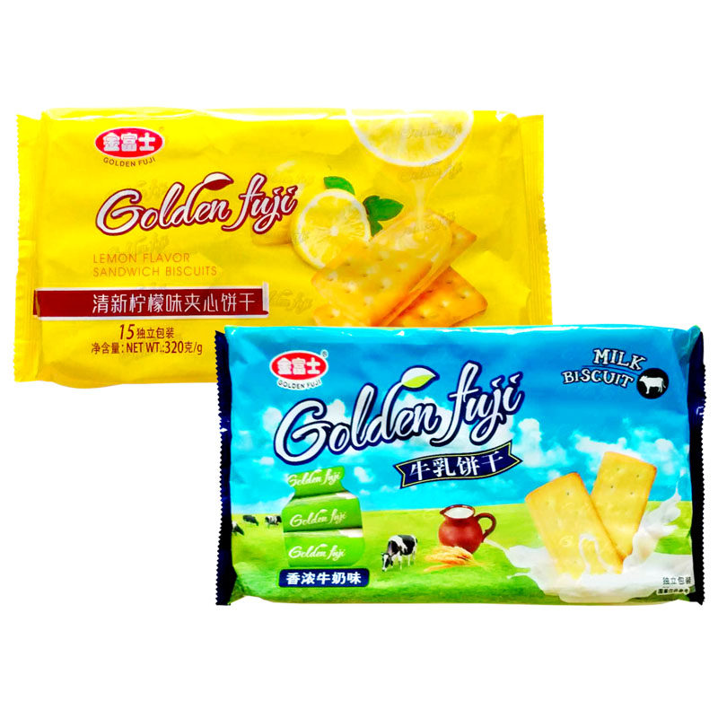 5 packs of Golden Fuji Biscuits Grape Strawberry Pineapple Sandwich Lemon Sandwich Milk Flavor 320g Individual Pack