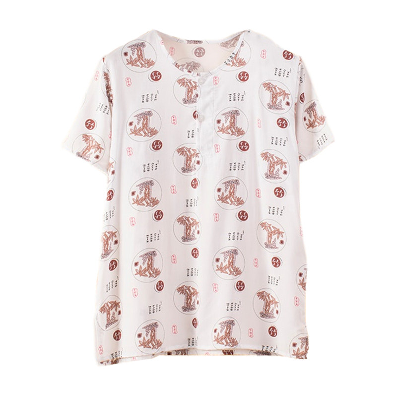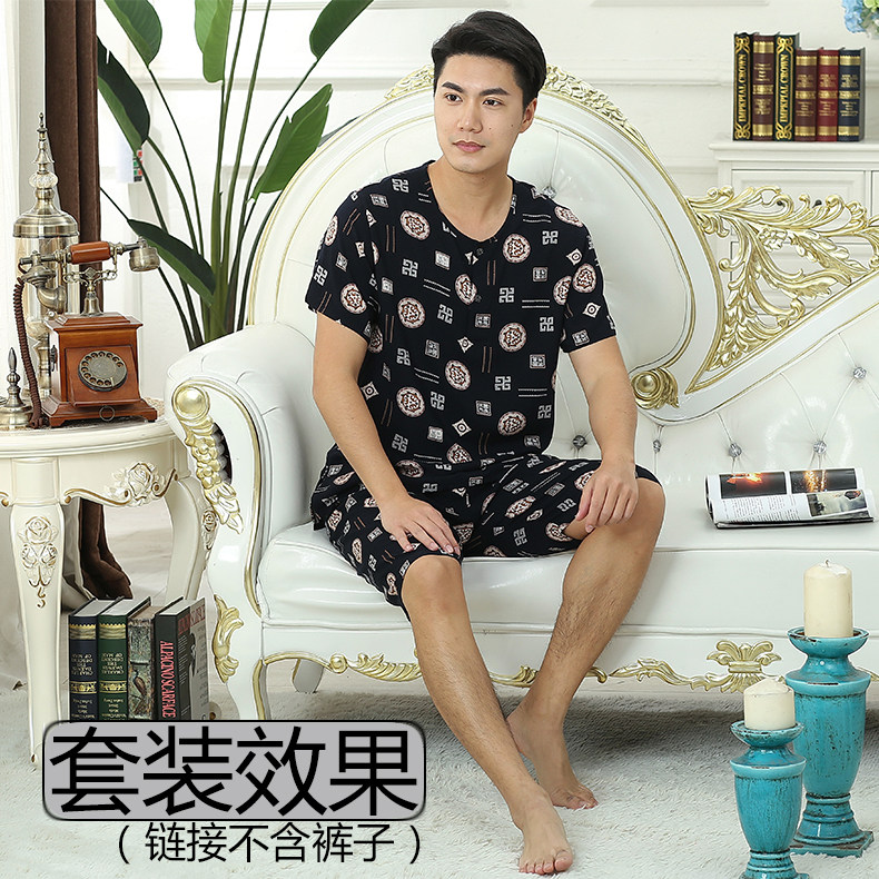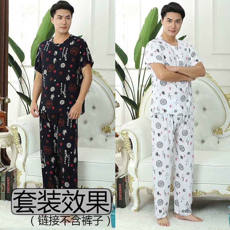 Men's Spring and Autumn Short-sleeved Round-neck Cotton Silk Clothes Middle-aged and Elderly Cotton Cotton Silk Singles Casual Home Large Size Short-sleeved