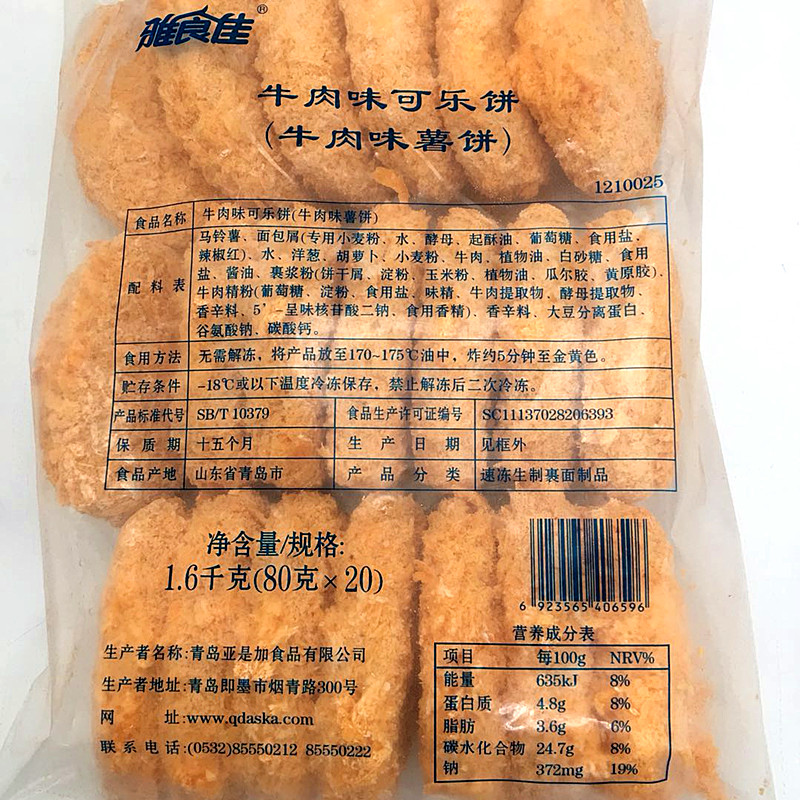 Yashijia Japanese croquettes Beef croquettes Potato cakes fried 1 6kg Jiangsu, Zhejiang, Shanghai and Anhui 5 packs