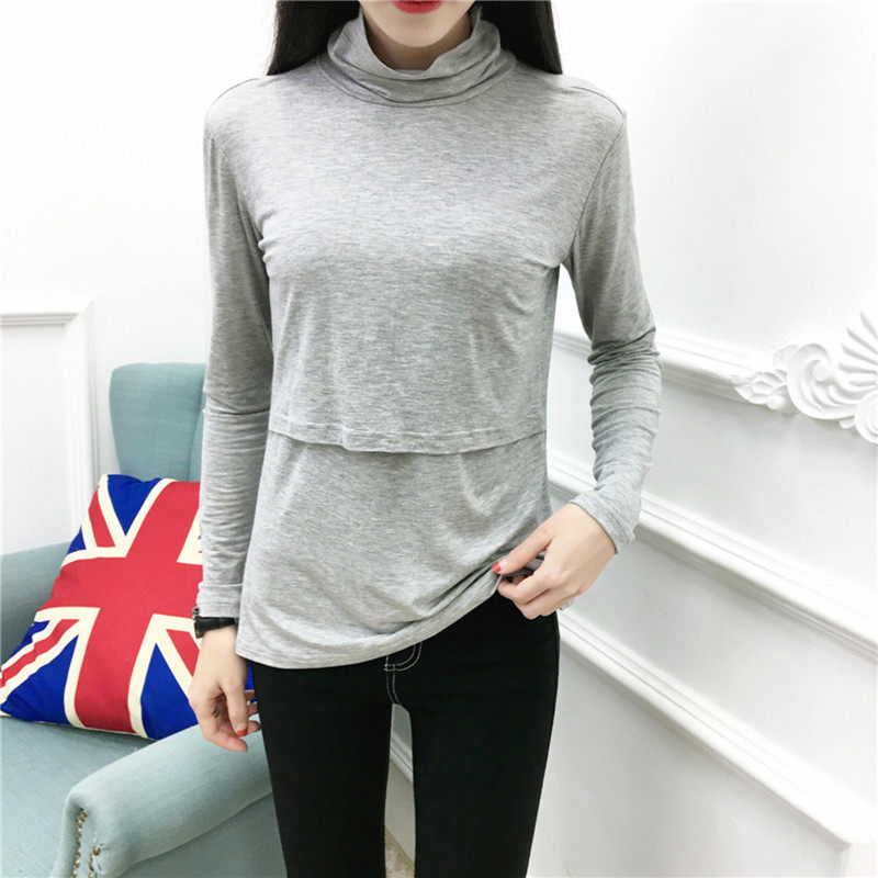 High neck nursing leggings long sleeve cotton T-shirt trim winter plus size maternity maternity clothes postpartum feeding autumn clothes spring