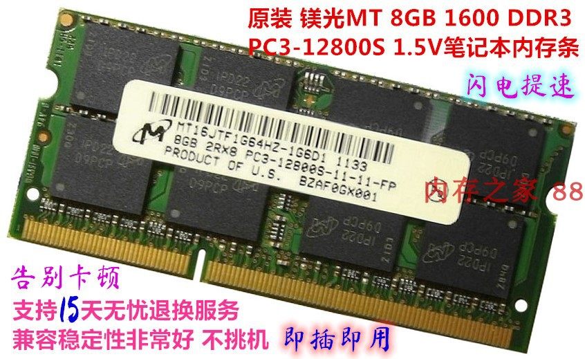 MT magnesium light 4GB 1600DDR31 5VHP notebook computer memory PC3-12800S1Rx8 compatible with 8g