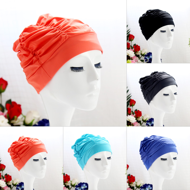 Swimming cap female male long hair not waterproof does not pull the head swimming cap cute Korean female pleated hat lady adult fashion